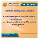 Новости прокуратуры Хакасии, официальные сообщения представителя ведомства, видео- и фотоматериалы, информация о мероприятиях с участием работников прокуратуры республики и прокуратур городов (районов) республики – все это доступно в Telegram-канале «Прокуратура Республики Хакасия» https://t.me/procrh19, а также на официальной странице ВКонтакте «Прокуратура Республики Хакасия» https://vk.com/procrkh